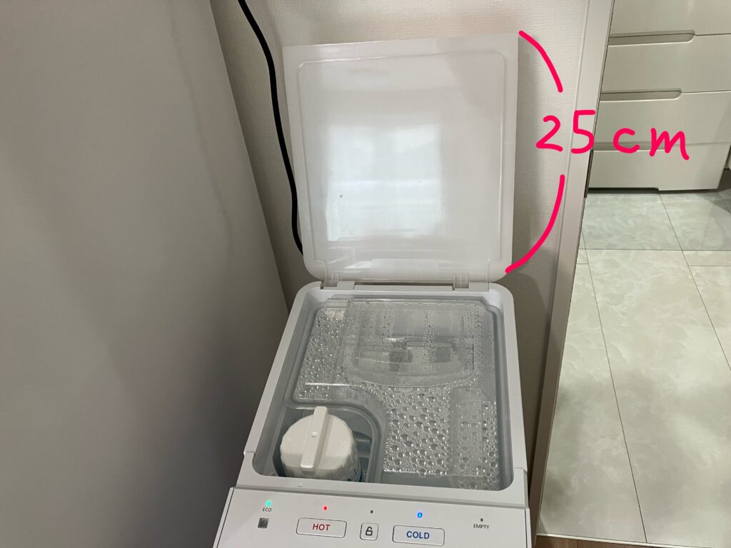 Litta本体の高さは50cmですが、水を補充するときに上部の蓋を開けるため、プラス25cmの余裕が必要です。