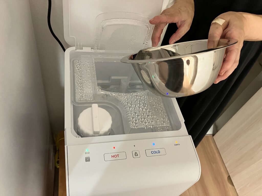 これまでは水を飲むときには、事前に水道水を電子レンジやケトルで沸かしたお湯を冷ましていましたが、今ではスイッチひとつで飲めます。